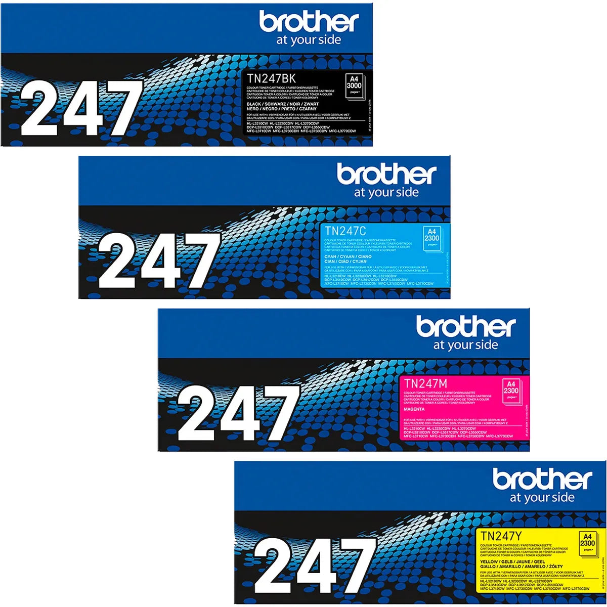 Entscheide dich für das originale Brother TN-247VAL / TN-247 Toner Sparset schwarz, cyan, magenta, gelb (4 Stück) bei Kolero, wenn du im Alltag größten Wert auf langfristig brillante Ausdrucke und einen absolut sicheren Betrieb legst. Durch den Kauf als Komplettpaket sparst du wertvolle Zeit bei der Beschaffung und hast immer das richtige Druckzubehör zur Hand, sobald es benötigt wird. Gleiche vor deiner Bestellung einfach noch einmal in Ruhe die Modellbezeichnung deines Gerätes mit den oben im Text genannten Druckern ab, um ganz sicherzugehen, dass dieses hochwertige Kombipack exakt zu deinem aktuellen System passt. So steht produktiven und farbenfrohen Arbeitstagen nichts mehr im Weg.