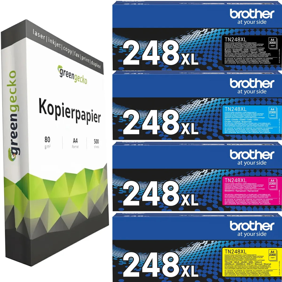 Brother TN-248XL Toner Sparset schwarz, cyan, magenta, gelb (4 Stück) & green gecko Kopierpapier