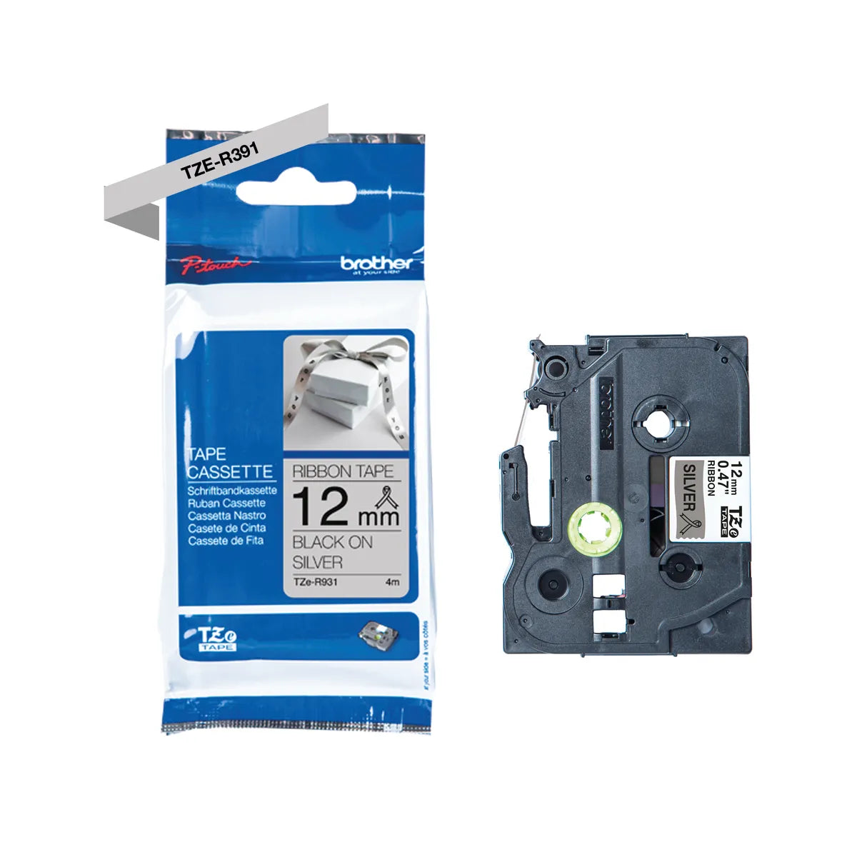 Brother TZE-R931 Schriftband schwarz auf silber (12mm x 4m)