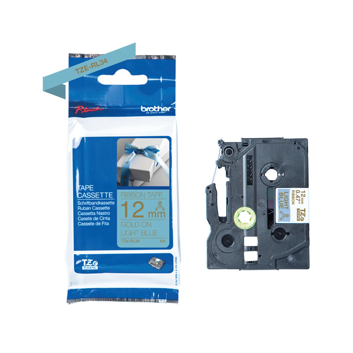 Brother TZE-RL34 Schriftband gold auf hellblau (12mm x 4m)