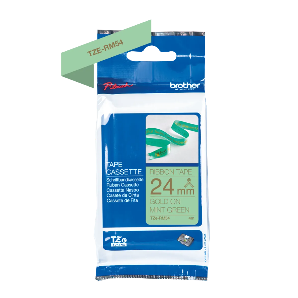 Brother TZE-RM54 Schriftband gold auf mintgrün (24mm x 4m)