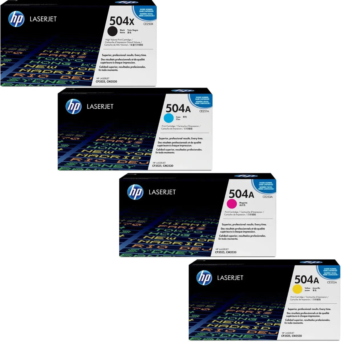 HP 504X & 504A / CE250X / CE251A / CE252A / CE253A Toner Sparset schwarz, cyan, magenta, gelb (4 Stück)